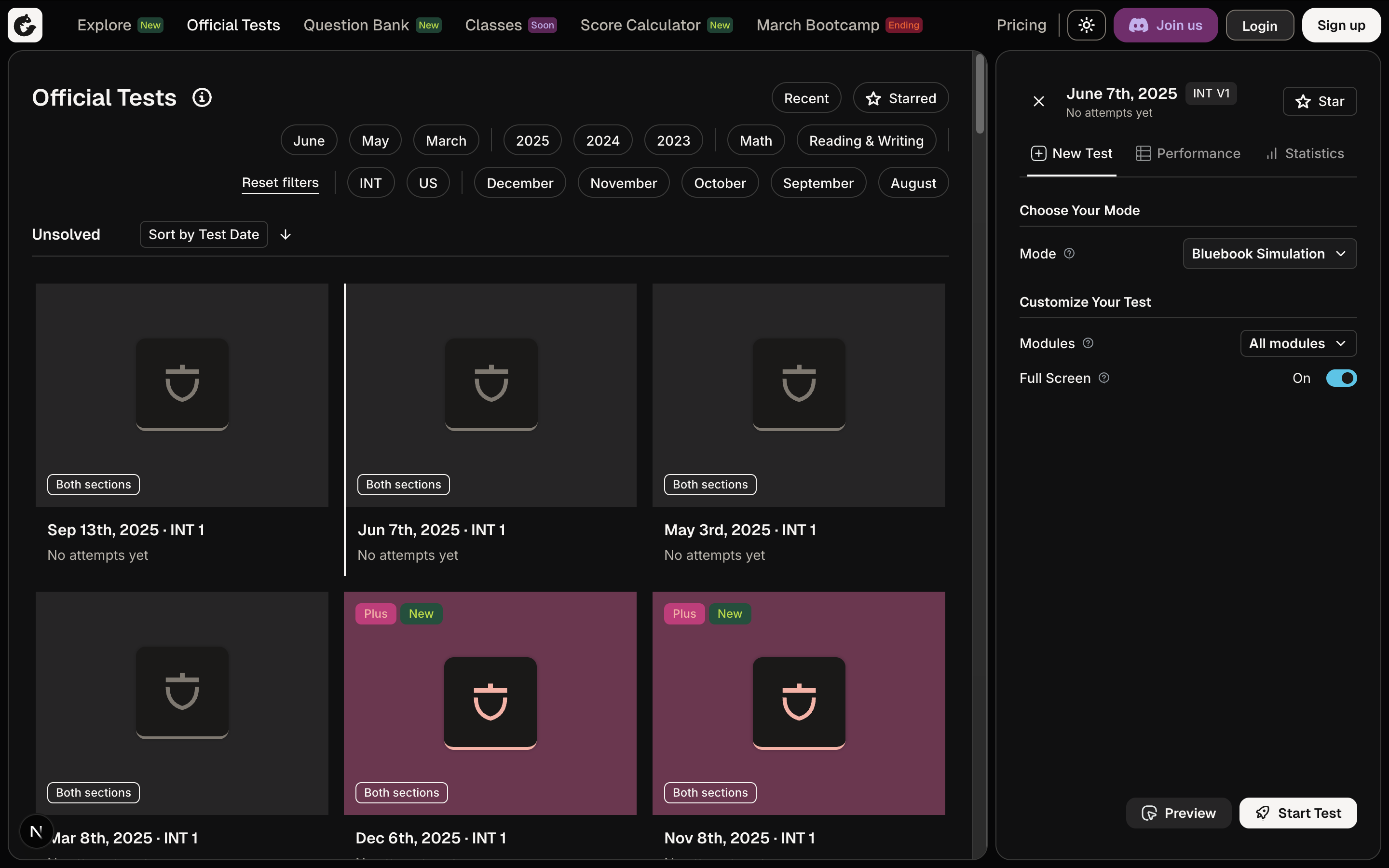 Once the Bluebook Simulation Mode is chosen, take a full-length practice test under real exam conditions.