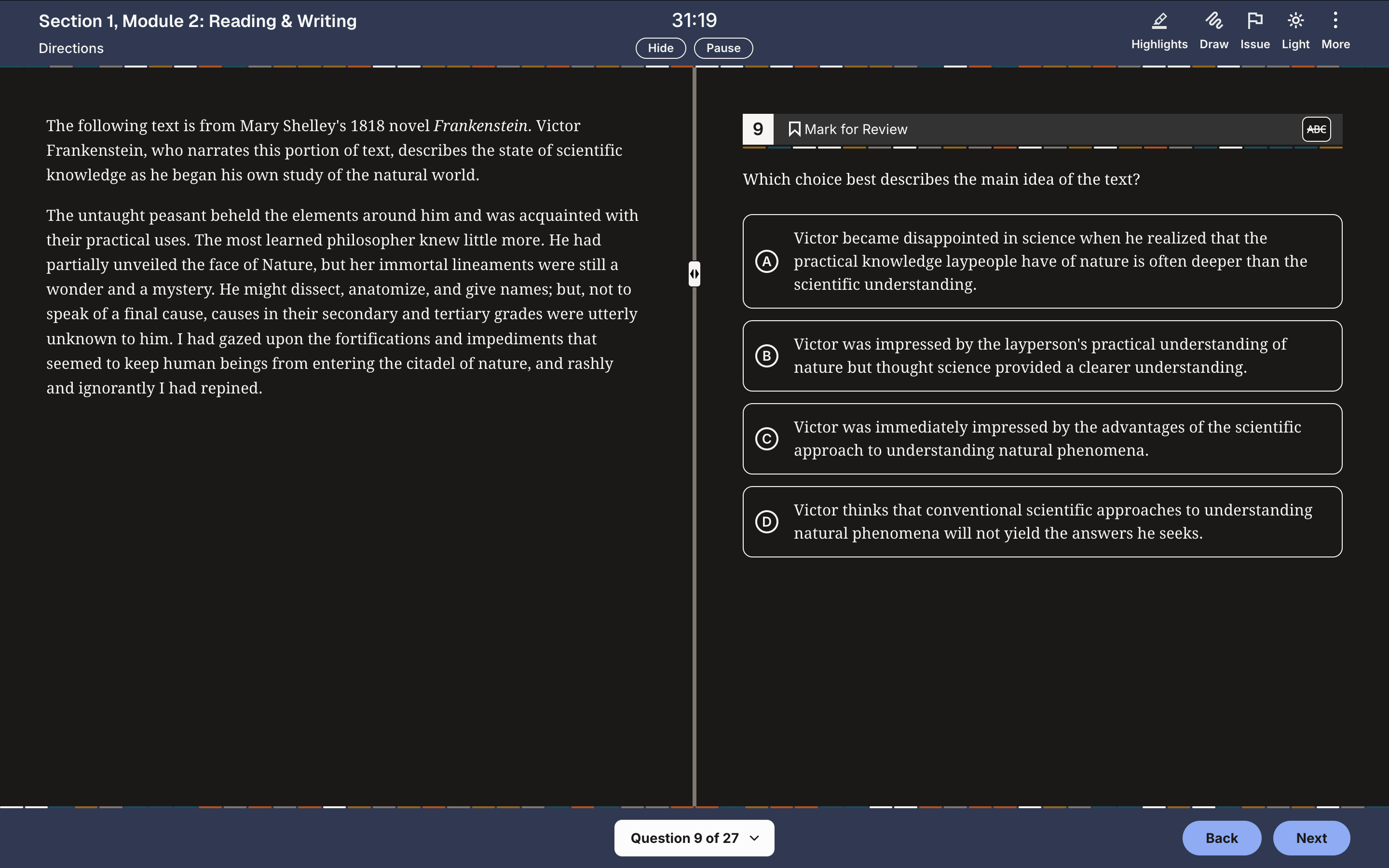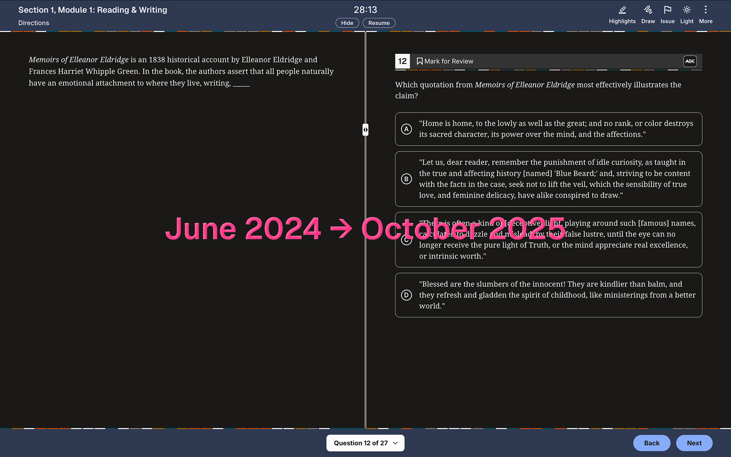 On the digital SAT, grammar usually starts around questions 14–16. Scroll there immediately and do those questions first until the 27th one. Every single time. Then go back and do the reading questions.